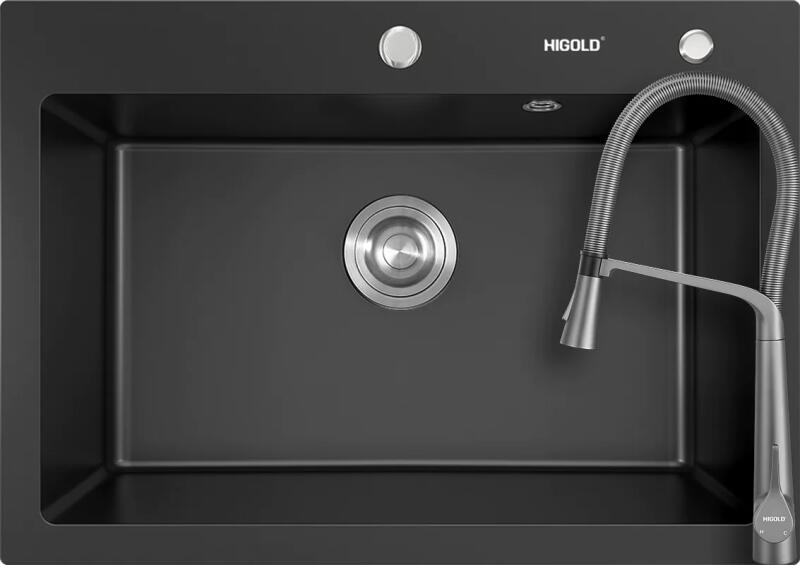 Higold 935004B konyhai mosogatótálca 680 x 480 mm, gránit kompozit, hagyományos beépítés, fekete. A kvarc mosogatókról való minden elképzelésnek eleget tesz. Jól néz ki. Minél többet használod, annál újabb. Hőálló és karcolásálló. Könnyen tisztítható. Egy törlés és az olajos, zsíros foltok is eltűnnek. Nagyon kevés ennyire sima és finom felületű kvarcból kés