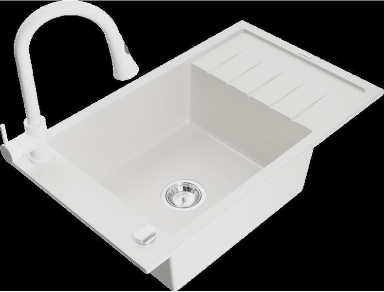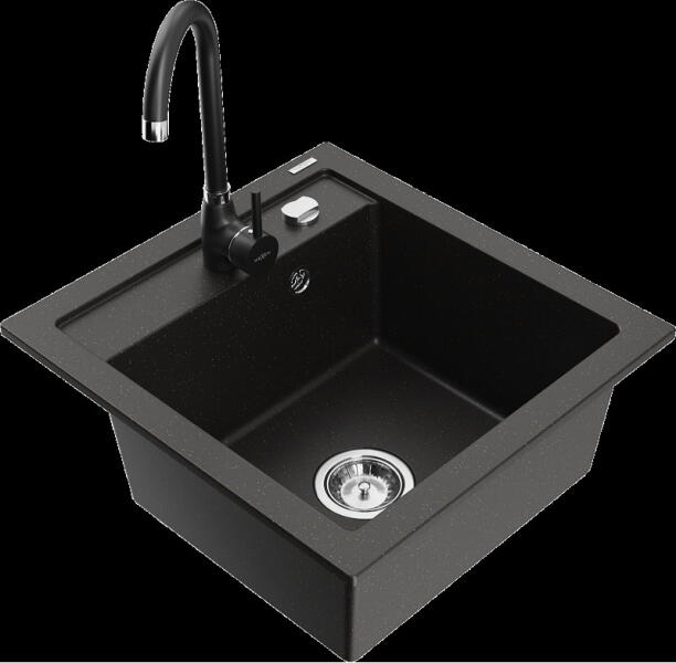 Mexen Milo konyhai mosogató: Gyártó: Mexen Sorozat: Milo Modell: 1 kamrás Beépítés: felülről a munkalapba süllyesztve Hossza 435 mm Szélesség 410 mm Magasság: 171 mm Kamra mélysége: 161 mm Kamra mérete: 375x280 mm Lefolyó átmérője: 90 mm Szifon + automatikus leeresztő csavar Anyaga: gránit (80% gránit - kő, 20% gyanta) Sima felület a könnyű tisztítás érdekében: igen