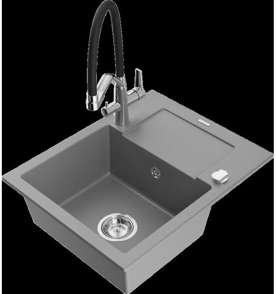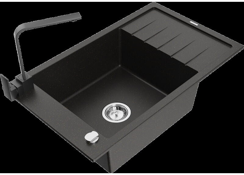 Mexen Enzo konyhai mosogató Gyártó: Mexen Sorozat: Enzo Modell: 1 kamrás, rövid csepegtetővel Beépítés: felülről a munkalapba süllyesztve Hossza 576 mm Szélesség 465 mm Magasság: 174 mm Kamra mélysége: 164 mm Kamra mérete: 395x320 mm Szifon + automatikus leeresztő csavar Anyaga: gránit (80% gránit - kő, 20% gyanta) Megnövelt ellenállás az ütésekkel, karcolásokkal, elsz