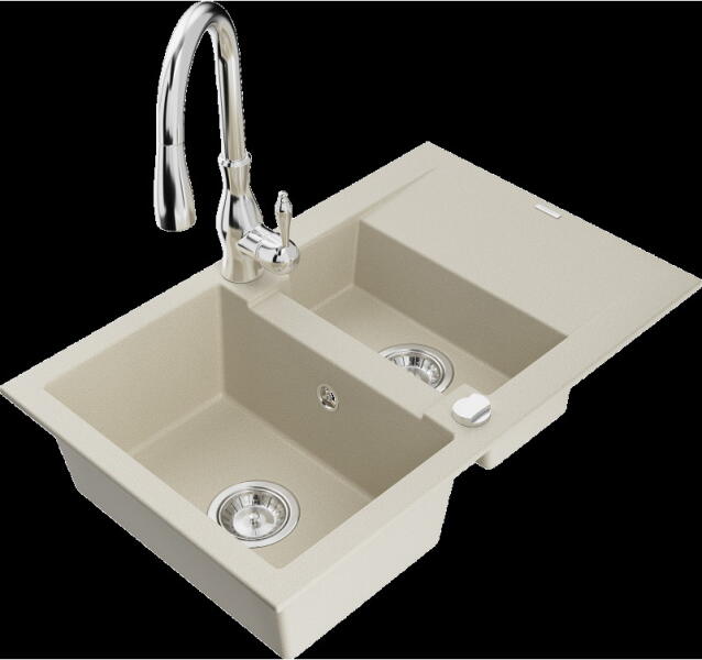 Tomas konyhai mosogató: Gyártó: Mexen Sorozat: Tomas Modell: 2-kamrás csepptálca nélkül Beépítés: felülről a munkalapba süllyesztve Hossz: 800 mm Szélesség: 500 mm Magasság: 190 mm Kamra mélysége: 180 mm (nagyobb), 180 mm (kisebb) Kamra mérete: 440x387 mm (nagyobb), 370x303 mm (kisebb) A lefolyó átmérője: Ø 90 mm Szifon + automatikus leeresztő csavar Anyaga: gránit (80% g