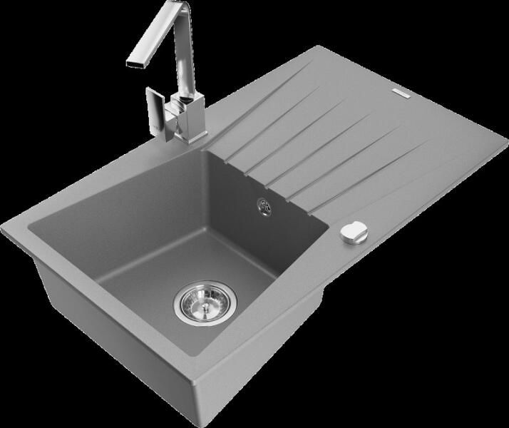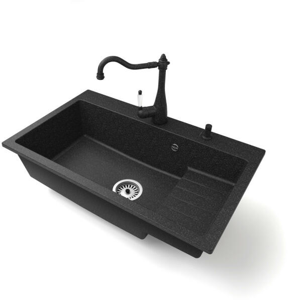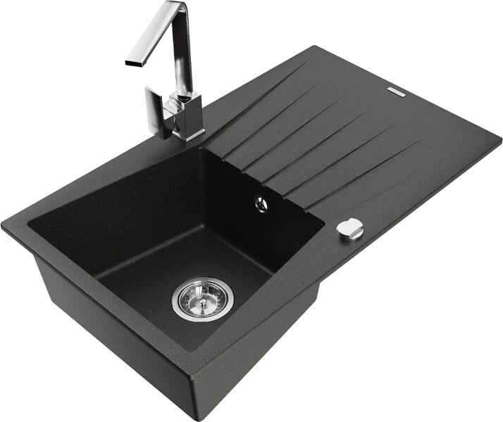 Mexen Gaspar konyhai mosogató: Gyártó: Mexen Sorozat: Gáspár Modell: 1,5-kamrás, rövid leeresztővel Fekete szín Beépítés: felülről a munkalapba süllyesztve Hossz: 737 mm Szélesség: 475 mm Magasság: 177 mm Kamra mélysége: 167 mm (nagyobb), 107 mm (kisebb) Kamra mérete: 395x272 mm (nagyobb), 375x182 mm (kisebb) Lefolyó átmérője: 90 mm Szifon + automatikus leeresztő csavar A