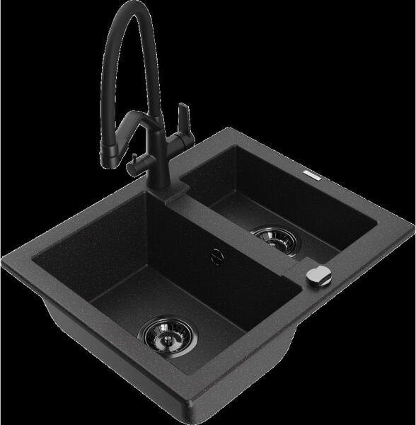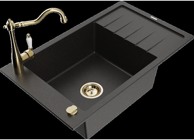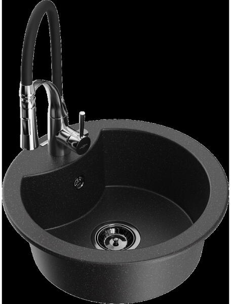 Mexen Leo, gránit mosogató 900x500x190 mm, 1 kamrás és Aster mosogató csaptelep, fekete-ezüst metál, 6501-73-73450-07-B Gyártó: Mexen Sorozat: Leo Modell: 1-kamrás s csepegtetővel Szín: fekete/ezüst metál Felületkezelés: sima Beépítés: felülről a munkalapba süllyesztve Hossza 900 mm Szélesség 500 mm Magasság: 190 mm Kamra mélysége: 180 mm Kamra mérete: 430x415 mm 500 mm