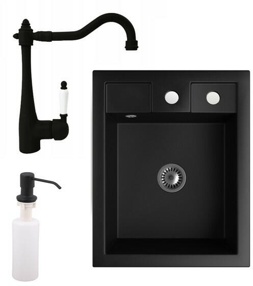 NERO Parma amely kisméretű, de mégis nagyon tágas gránit mosogató csapteleppel, szifonkészlettel és beépíthető mosogatószer adagolóval, matt fekete színben. Egyik nagy előnye, hogy már egy 40 cm széles konyhabútor elembe is beépíthető, az 50 cm-es mélysége kellő méretet biztosít. A medence mélysége is nagynak számít, 18 cm. Tökéletes bármilyen stílusú konyhába a