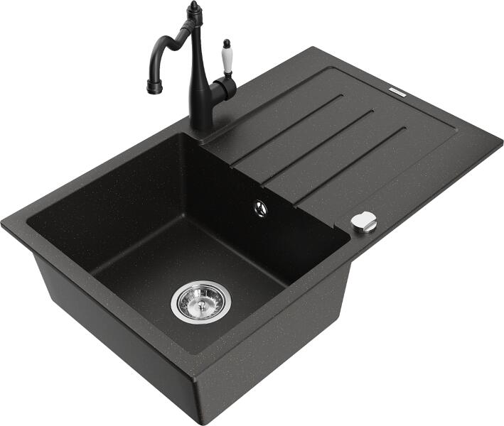 Mexen Gaspar, gránit mosogató 752x436x161 mm, 1,5 kamrás és Carla mosogató csaptelep, szürke, 6507-71-670700-70-B Gyártó: Mexen Sorozat: Gáspár Modell: 1,5-kamrás, rövid leeresztővel Beépítés: felülről a munkalapba való beágyazáshoz Szín: szürke Hossza 737 mm Szélesség 475 mm Magasság: 177 mm Kamra mélysége: 167 mm (nagyobb), 107 mm (kisebb) Kamra mérete: 395x272 mm (n