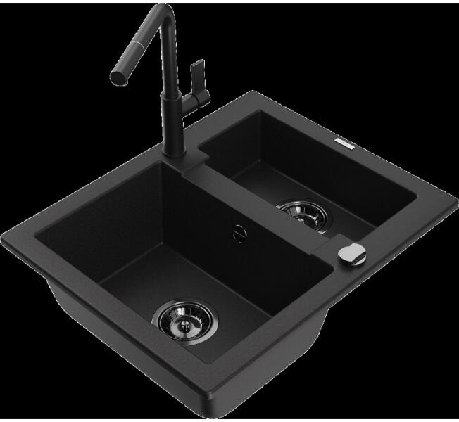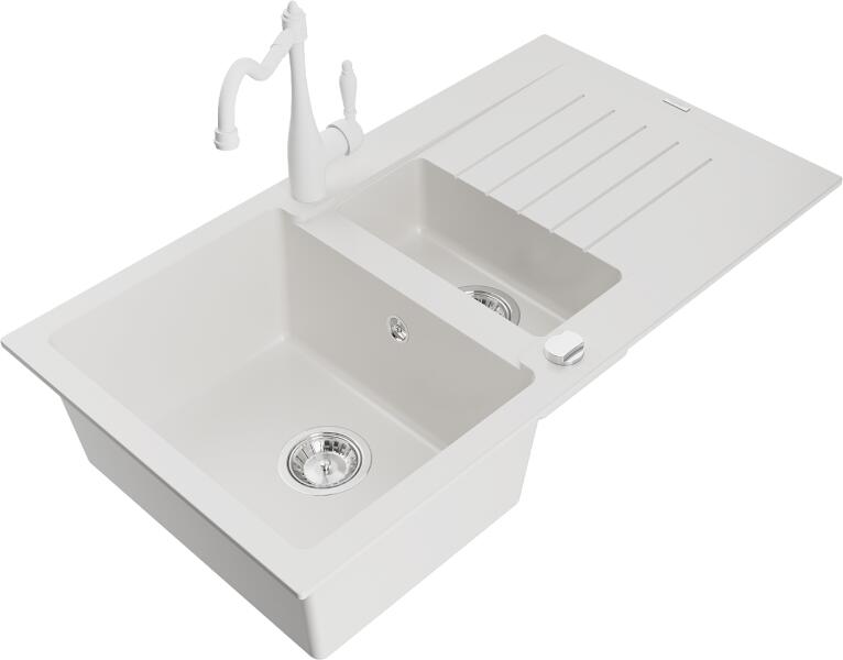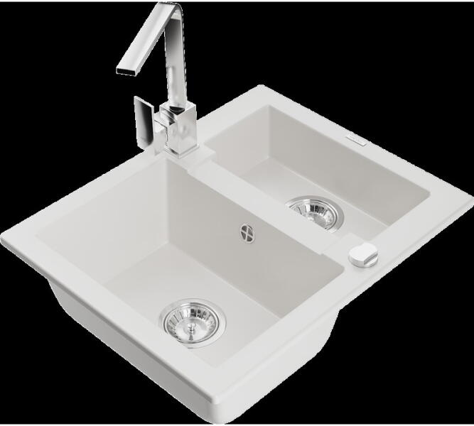 Mexen Matias, gránit mosogató 900x505x200 mm, 1,5 kamrás és mosogató csaptelep Carla, fehér, 6502-20-670700-20 Gyártó: Mexen Sorozat: Matias + Carlo Mosogató: Modell: 1,5-kamrás lefolyóval Beépítés: felülről a munkalapba való beágyazáshoz Felületkezelés: sima Hossza 900 mm Szélesség 505 mm Magasság: 200 mm Kamra mélysége: 180 mm (nagyobb), 115 mm (kisebb) Kamra mérete: 4