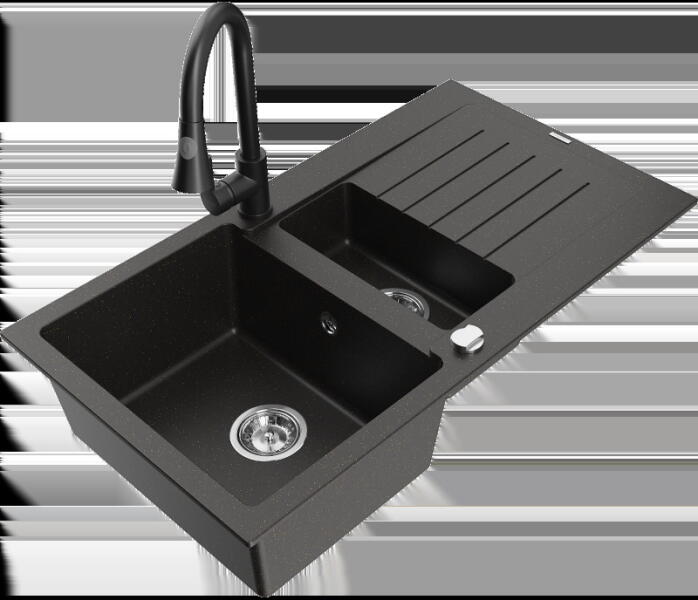 Gyártó: Mexen Sorozat: Cesar + Savita Mosogató: Méretek: 775x470x200 mm Kamra méretei: 410x355 mm Kamra mélysége: 180 mm Lefolyó átmérője: ø90 mm Típus: 1 kamrás lefolyóval Mosogató típusa: a munkalapba való beágyazáshoz Anyaga: gránit (80% gránit adalékanyag 20% gyanta) Túlfolyó nyílás: Igen Lyukak: 2 (1 lyuk a mosogató csaptelepéhez, 1 lyuk az automatikus leeresztőc