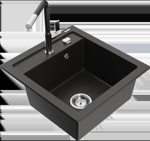 Mosogató: Gyártó: Mexen Sorozat: Vito Modell: 1 kamrás Felszerelés: munkalapra Felület típusa : sima Hossza 490 mm Szélesség 520 mm Magasság: 210 mm Kamra mélysége: 200 mm Kamra mérete: 410x360 mm Lefolyó átmérője: 90 mm Szifon + automatikus leeresztő csavar Anyaga: gránit (80% gránit - kő, 20% gyanta) Megnövelt ellenállás az ütésekkel, karcolásokkal, elszíneződésekke