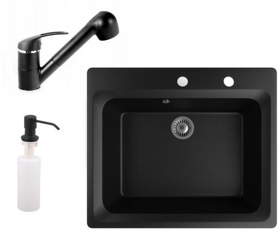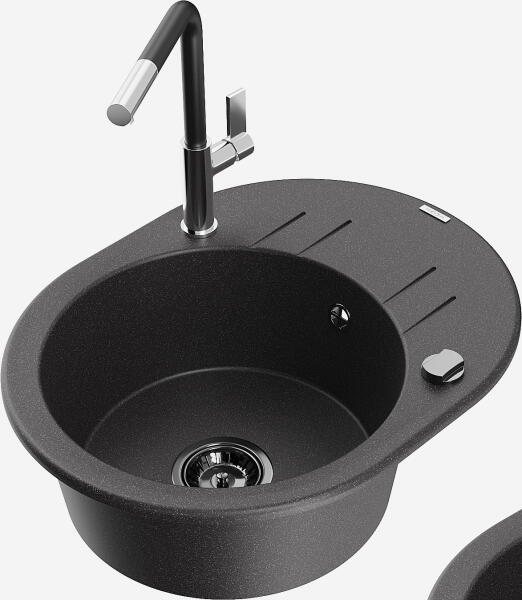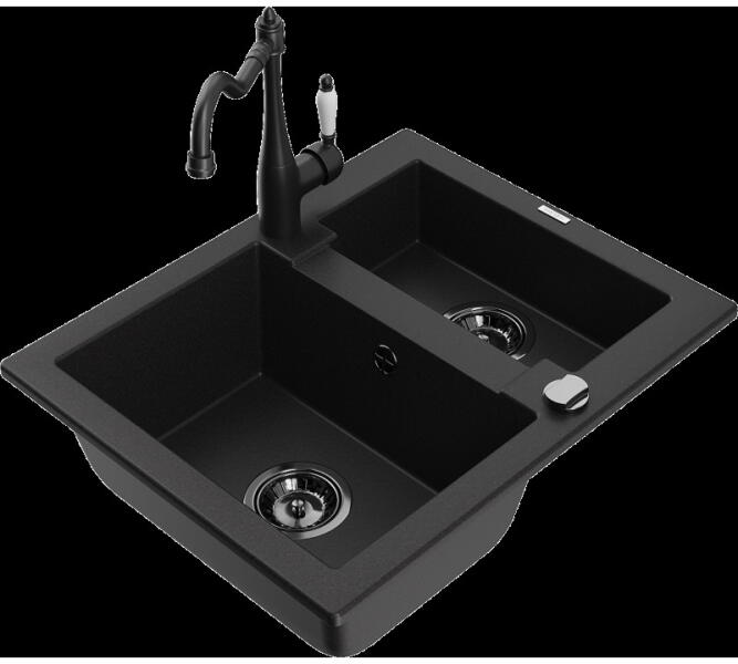 Mexen Enzo, gránit mosogató 576x465x174 mm, 1 kamrás, fekete Telma csaptelep, fekete foltos, 6506-76-670200-70 Gyártó: Mexen Sorozat: Enzo Modell: 1 kamrás, rövid csepegtetővel Hossza 576 mm Szélesség 465 mm Magasság: 174 mm Szín: fekete foltos Kamra mélysége: 164 mm Kamra mérete: 395x320 mm Szifon + automatikus leeresztő csavar Anyaga: gránit (80% gránit - kő, 20% gyanta) Megn