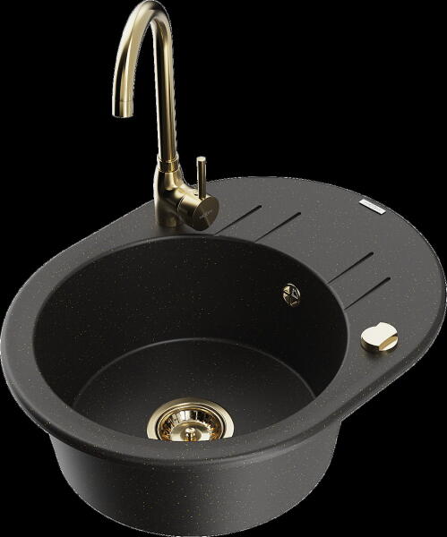 Mexen Kevin, gránit mosogató 586x458x190 mm, 1 kamrás és arany Telma csaptelep, fekete - arany metál, 6517-75-670200-50 Gyártó: Mexen Sorozat: Kevin Modell: 1 kamrás, rövid leeresztővel Felszerelés: munkalapra Hossza 586 mm Szélesség 458 mm Magasság: 190 mm Kamra mérete: 378x374 mm Kamra mélysége: 175 mm A lefolyó átmérője: Ø 90 mm Szifon + automatikus leeresztő csavar Anyag