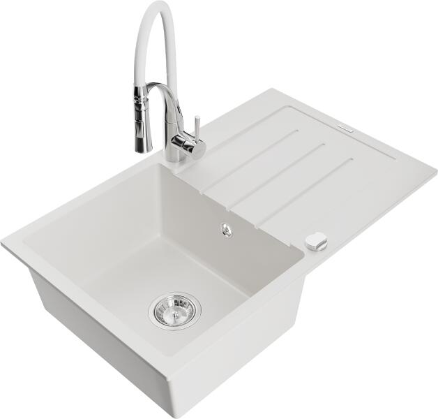 Mexen Cesar konyhai mosogató: Gyártó: Mexen Sorozat: Cesar Modell: 1 kamrás Beépítés: felülről a munkalapba süllyesztve Méretek: 775x470x190 mm Kamra mélysége: 180 mm Kamra mérete: 410x355 mm Lefolyó átmérője: 90 mm Szifon + automatikus leeresztő csavar Anyaga: gránit (80% gránit - kő, 20% gyanta) Sima felület a könnyű tisztítás érdekében: igen Megnövelt ellenállás