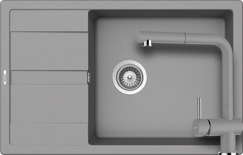Schock Ronda D-100XL konyhai mosogatótálca Cristalite Croma 780 x 500 mm, gránit, megfordítható, hagyományos beépítés, szürke munkalapba beépíthető, egymedencés, megfordítható, csepegtetővel ellátott, ideálisan illeszkedik a minimum 60 cm-es alsószekrényhez. A csaptelep helye előre elkészített, könnyedén áttörhető. A csomagban találja a használati útmutatót, amely