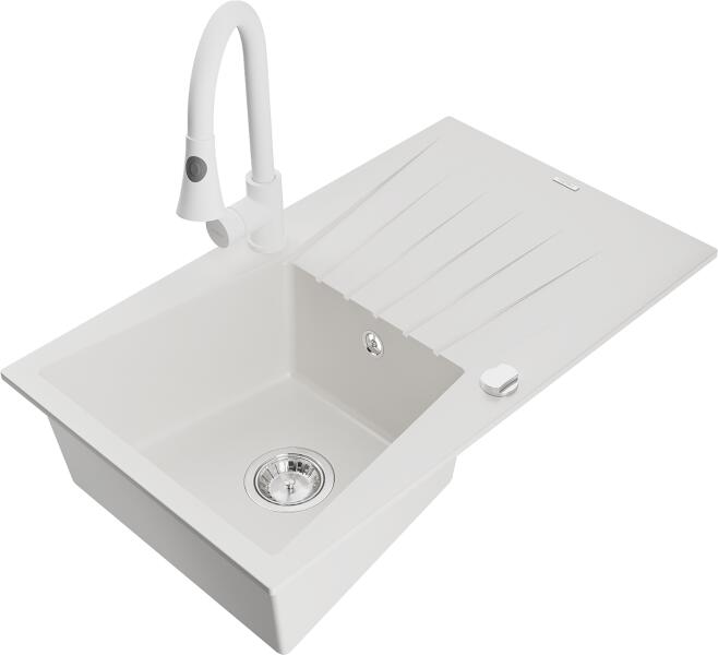 Mexen Enzo konyhai mosogató Gyártó: Mexen Sorozat: Enzo Modell: 1 kamrás, rövid csepegtetővel Beépítés: felülről a munkalapba süllyesztve Hossza 576 mm Szélesség 465 mm Magasság: 174 mm Kamra mélysége: 164 mm Kamra mérete: 395x320 mm Szifon + automatikus leeresztő csavar Anyaga: gránit (80% gránit - kő, 20% gyanta) Megnövelt ellenállás az ütésekkel, karcolásokkal, elsz