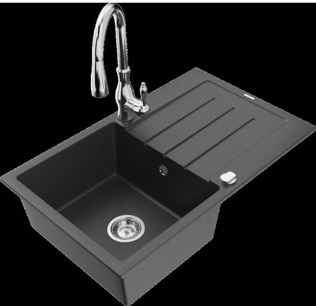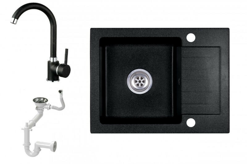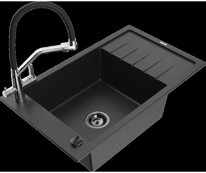 Laneo V575-44C gránit mosogató szett fekete színben. A készlet tartalmazza a magasított csaptelepet és a dugóemelővel ellátott szifon szettet. Méreténél fogva ideális lehet olyan konyhákba, ahol az okos helykihasználás lényeges, viszont szükséges a megfelelő méretű medence és egy kis csepegtető is. CSOMAG TARTALMA: - Gránit mosogató - Gamma Deco mosogató csaptelep - Szif