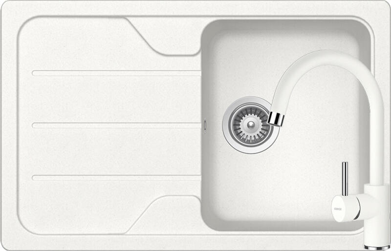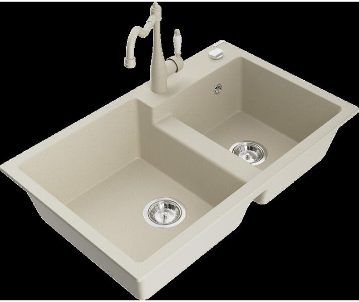 Mexen Enzo konyhai mosogató: Gyártó: Mexen Sorozat: Enzo Modell: 1 kamrás Beépítés: felülről a munkalapba süllyesztve Méretek: 576x465x174 mm Kamra mélysége: 164 mm Kamra mérete: 395x320 mm Lefolyó átmérője: 90 mm Szifon + automatikus leeresztő csavar Anyaga: gránit (80% gránit - kő, 20% gyanta) Sima felület a könnyű tisztítás érdekében: igen Megnövelt ellenállás az