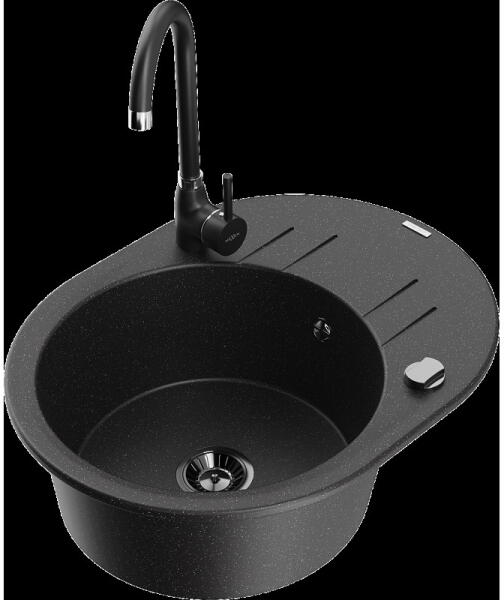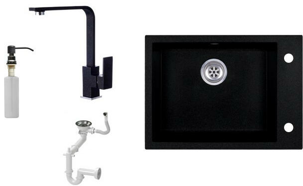 Evinion gránit mosogató szett fekete színben, extra nagy medencével. A medence mérete 48.5 x 38.5 cm, amiben szinte bármilyen méretű edény elfér. Modern megjelenésű, letisztult szögletes formavilág jellemzi, kiváló eleme lehet egy minimál vagy modern stílusú konyhának. A csapnak kialakított lyuk oldalt helyezkedik el, ami mellett kényelmesen elhelyeztehő egy mosogatószer ad