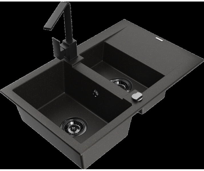 NERO Malta gránit mosogató, ami egyesíti a praktikus megoldást a bőséges helykínálattal és a harmonikus designnal. Méretes, 36 x 38 cm-es, medencével és kellően nagy csepegtető résszel rendelkezik, arányosan kialakítva. Minden igényt kielégít ami egy mosogatótól elvárható, amihez mindössze 78 cm hely szükséges. Egyenes és hajlított vonalvezetés harmonikus keveréke je