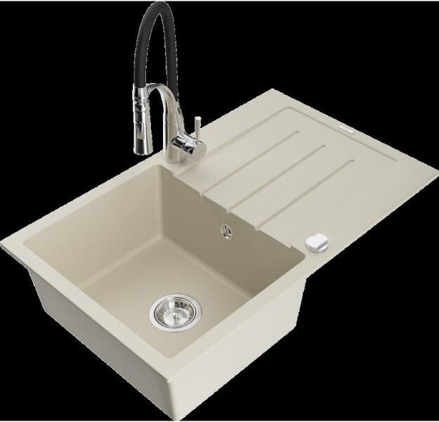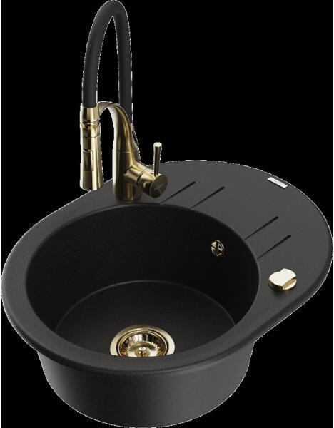 Mexen Milo konyhai mosogató: Gyártó: Mexen Sorozat: Milo Modell: 1 kamrás Beépítés: felülről a munkalapba süllyesztve Hossza 435 mm Szélesség 410 mm Magasság: 171 mm Kamra mélysége: 161 mm Kamra mérete: 375x280 mm Lefolyó átmérője: 90 mm Szifon + automatikus leeresztő csavar Anyaga: gránit (80% gránit - kő, 20% gyanta) Sima felület a könnyű tisztítás érdekében: igen