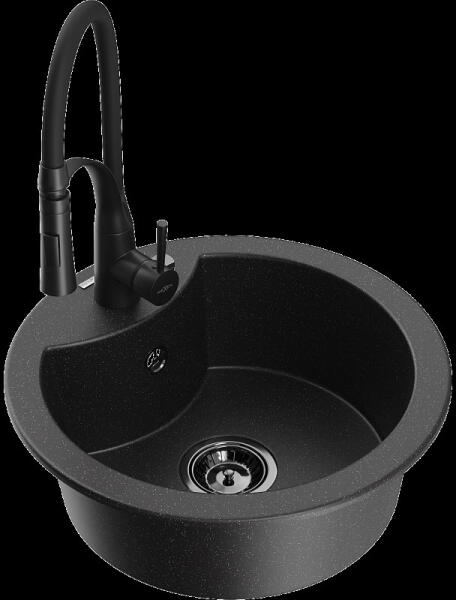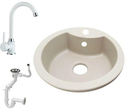 NERO M488 kör kialakítású gránit mosogató szett fehér színben. A készlet tartalmazza a kerámia betétes csaptelepet és a szifonkészletet. Méreténél fogva ideális kisméretű konyhákba, ahol az okos helykihasználás lényeges. Már egy 45 cm széles mosogató szekrénybe is beépíthető. Helytakarékos mérete ellenére a 40 cm átmérőjű medencéje kiválóan használható nag
