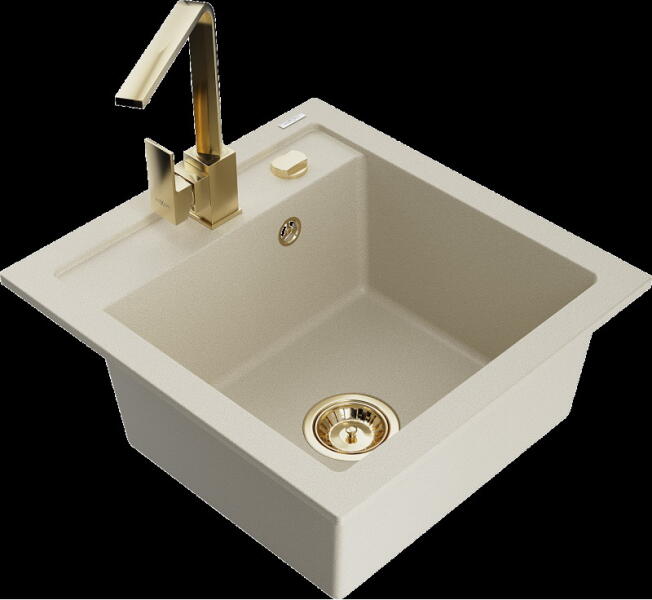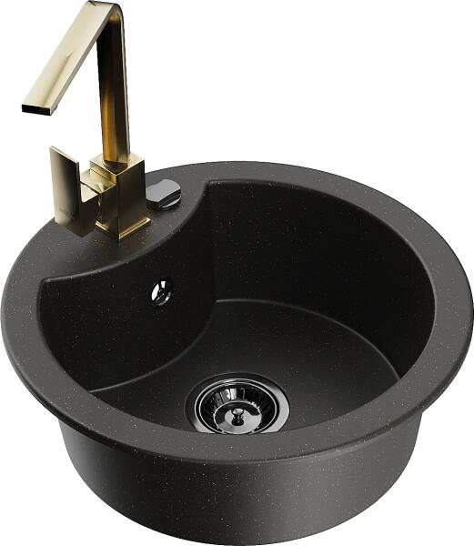 Mexen Diego, 1 rekeszes gránit mosogató 488x488x167 mm, fekete szifon, arany fényes Rita csaptelep, fekete-arany metál, 6512-75-670300-50-B Gyártó: Mexen Sorozat: Diego Modell: 1 kamrás Felszerelés: munkalapra Szín: fekete - arany metál Felület típusa : sima Hossza 488 mm Szélesség 488 mm Magasság: 167 mm Kamra mélysége: 157 mm Kamra mérete: 406 mm Lefolyó átmérője: 90 mm Sz