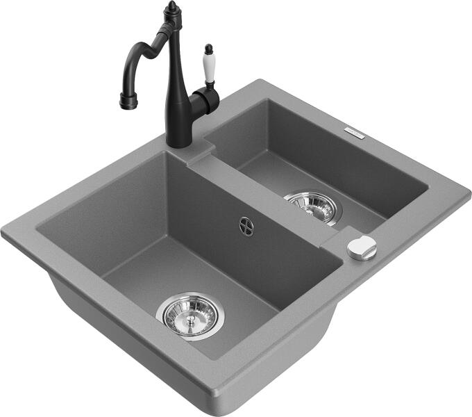 Mexen Carlos, gránit mosogató 582x475x177 mm, 1,5 kamrás és mosogató csaptelep Carla, szürke, 6518-71-670700-70 Műszaki adatok: Gyártó: Mexen Sorozat: Carlos Modell: 1,5-kamrás csepptálca nélkül Beépítés: felülről a munkalapba süllyesztve Szín: szürke Hossza 582 mm Szélesség 475 mm Magasság: 177 mm Kamra mélysége: 162 mm (nagyobb), 102 mm (kisebb) Kamra mérete: 395x272 m