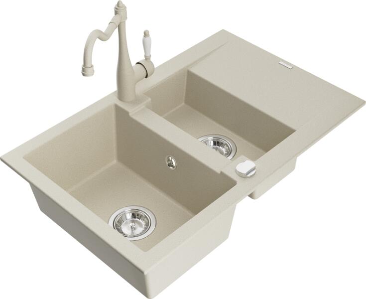 Mexen Gaspar, gránit mosogató 752x436x161 mm, 1,5 kamrás és mosogató csaptelep Carla, bézs, 6507-69-670700-69 Gyártó: Mexen Sorozat: Gáspár Modell: 1,5-kamrás, rövid leeresztővel Beépítés: felülről a munkalapba való beágyazáshoz Szín: bézs Hossza 737 mm Szélesség 475 mm Magasság: 177 mm Kamra mélysége: 167 mm (nagyobb), 107 mm (kisebb) Kamra mérete: 395x272 mm (nagyobb