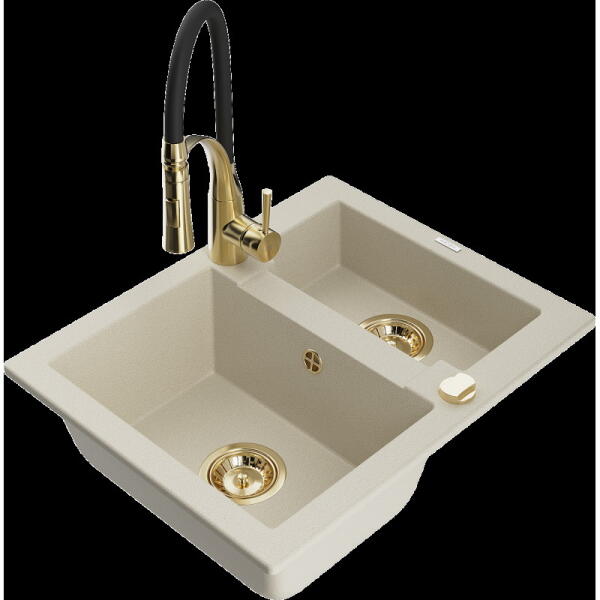 Mexen Mario, gránit mosogató 820x436x161 mm, 2 kamrás és Aster mosogató csaptelep, szürke, 6504-71-73450-70-B Gyártó: Mexen Sorozat: Mario + Aster Mosogató: Méretek: 820x436x161 mm Kamra mélysége: 151 mm Kamra méretei: 356x336 mm Lefolyó átmérője: ø90 mm Szín: szürke Típus: 2 kamrás Típus: felülről az asztal munkalapjába süllyesztve Anyaga: gránit (80% gránit adalékan