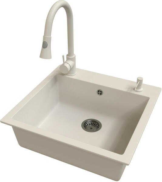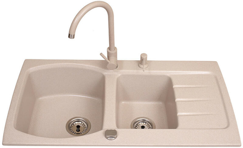 Másfél medencés gránit mosogató bézs/homokbézs színben. Ez a modell egyesíti a praktikumot a stílusos megjelenéssel. Nagy medencéinek köszönhetően kényelmes mosogatást tesz lehetővé. Egyik különlegessége az átlag feletti méretű gyümölcsmosó rész. A két medence lehetővé teszi párhuzamosan a mosogatást, öblítést vagy csak a vízben tartást a főzéskor. Nagy mé