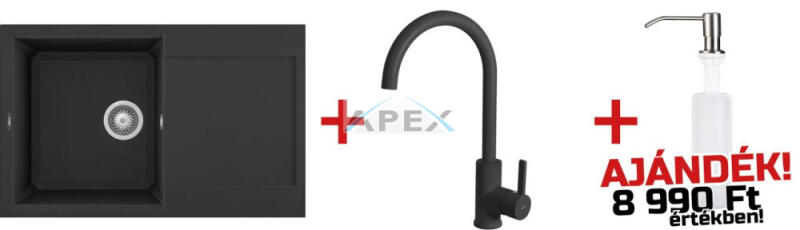 Elleci akciós szett ajánlat: mosogatótálca+csaptelep ajándék mosogatószer-adagolóval. A SZETT TARTALMA Elleci Easy 300 G40 Nero mosogatótálca 1 medencés mosogatótálca csepegtetővel, munkalapra szerelhető, anyaga: granitek, színe: G40 nero, mosogatótálca mérete: 790x500 mm, medence mélysége: 220 mm, tartozékok: helytakarékos szifon, szűrőkosár, rögzítő fülek, elleci t