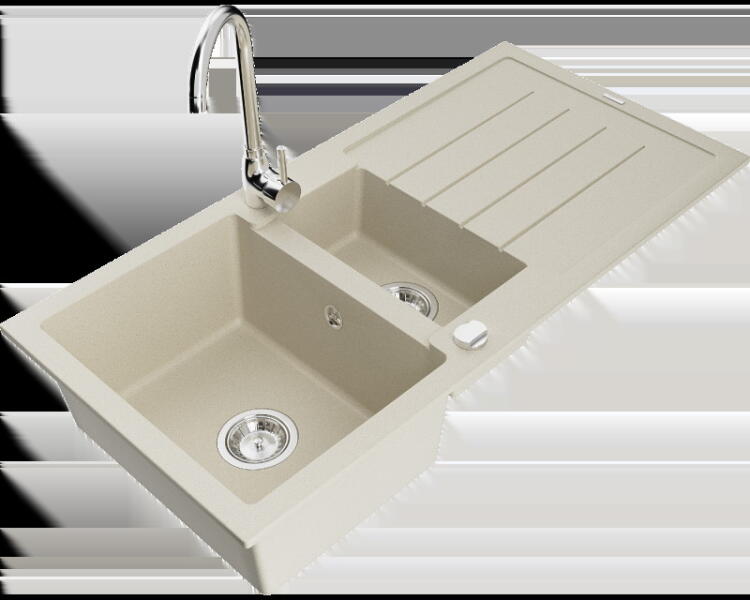 Mexen Gaspar konyhai mosogató: Gyártó: Mexen Sorozat: Gáspár Modell: 1,5-kamrás, rövid csepegtetővel Beépítés: felülről a munkalapba süllyesztve Méretek: 737x475x177 mm Kamra mélysége: 162 mm (nagyobb), 102 mm (kisebb) Kamra mérete: 395x272 mm (nagyobb), 375x182 mm (kisebb) Lefolyó átmérője: 90 mm Szifon + automatikus leeresztő csavar Anyaga: gránit (80% gránit - kő, 20%