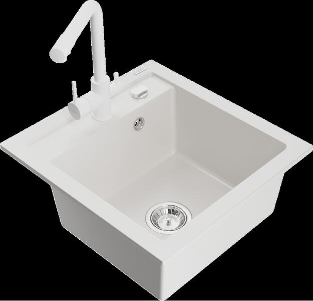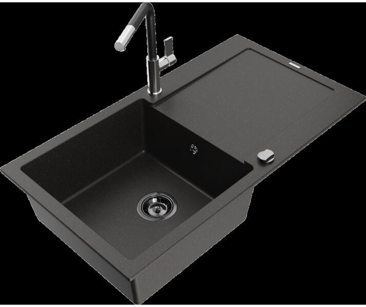 Mosogató: Gyártó: Mexen Sorozat: Andres Méretek: 1000x500x200 mm Kamra mélysége: 190 mm (nagyobb), 115 mm (kisebb) Kamra méretei: 430x330 mm (nagyobb), 340x170 mm (kisebb) Lefolyó átmérője: ø90 mm Típus: 1,5 kamrás csepegtetővel Típus: felülről az asztallapba való beágyazáshoz Anyaga: gránit (80% gránit adalékanyag + 20% gyanta) Túlfolyó nyílás: Igen Gyárilag előkész
