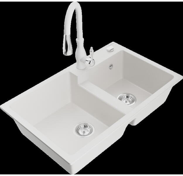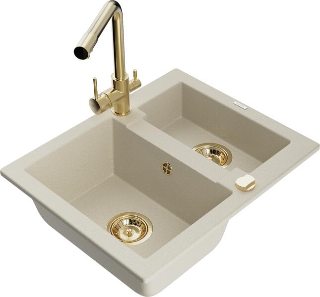 Mexen Tomas, gránit mosogató 800x500x190 mm, 2 kamrás és mosogató csaptelep Carla, bézs, 6516-69-670700-70 A konyhai mosogató műszaki adatai: Gyártó: Mexen Sorozat: Tomas Modell: 2-kamrás csepptálca nélkül Beépítés: a munkalapba való beágyazáshoz Szín: bézs Felületkezelés: sima Hossza 800 mm Szélesség 500 mm Magasság: 190 mm Kamra mélysége: 180 mm (nagyobb), 180 mm (k