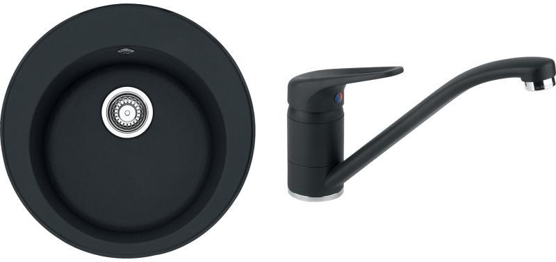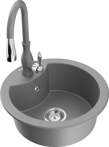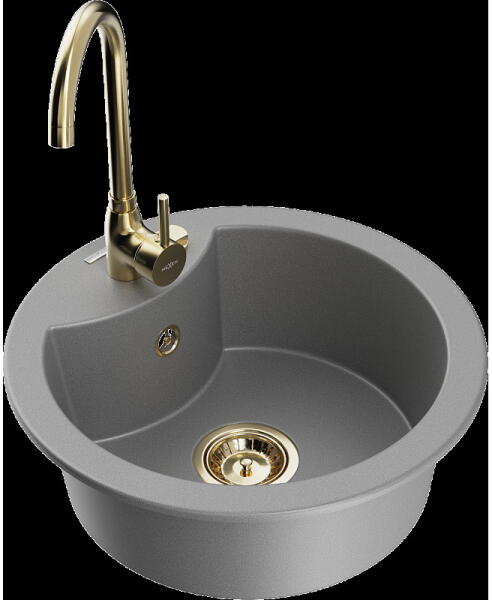Fragranite ROG 610 Avena színű csomag mosogató, 510 mm átmérővel, standard szélek, medence 490x185 mm, gránit, kizárólagos Sanitized technológiával kezelve ami védelmet nyújt a baktériumok és mikrobák ellen, karton dobozban szállítva, 3 1/2"-os lefolyóval és rögzítő kapcsokkal + Novara Plus Avena csaptelep, egykaros, 360*- os forgatható kifolyócsővel, kerámiabetétes el