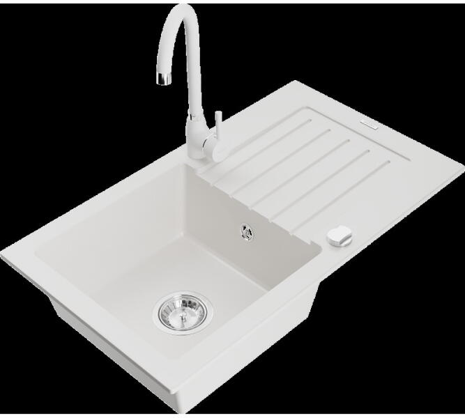Mosogató: Gyártó: Mexen Sorozat: Vito Modell: 1 kamrás Felszerelés: munkalapra Felület típusa : sima Hossza 490 mm Szélesség 520 mm Magasság: 210 mm Kamra mélysége: 200 mm Kamra mérete: 410x360 mm Lefolyó átmérője: 90 mm Szifon + automatikus leeresztő csavar Anyaga: gránit (80% gránit - kő, 20% gyanta) Megnövelt ellenállás az ütésekkel, karcolásokkal, elszíneződésekke