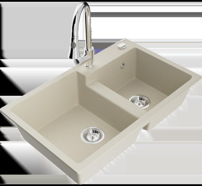 NERO Eris gránit mosogatótálca, ami 78 x 50 cm-es méretével, valamint a 20 cm mély medencével minden igényt kielégít, mégsem foglal sok helyet a konyhai munkafelületből. Markánsan bordázott, de letisztult csepegtető rész és körben vízvető perem kapott helyet. A mosogatón 2 lyuk található, egy a csaptelepnek és egy a mosogatószer adagolónak vagy az automata dugókiemelőn