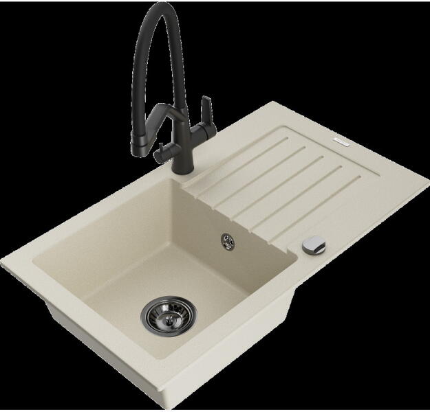 Mexen Milo, 1 kamrás gránit mosogató 435x410x171 mm és fehér csaptelep Rita, fehér, 6505-20-670300-20 Mosogató: Gyártó: Mexen Sorozat: Milo Fehér szín Mérete: 435x410x171 mm Kamra mélysége: 161 mm Kamra méretei: 375x280 mm Lefolyó átmérője: ø90 mm Típus: 1 kamrás Típus: A pult tetejébe süllyesztett Anyaga: gránit (80% gránit adalékanyag 20% gyanta) Túlfolyó lyuk: igen