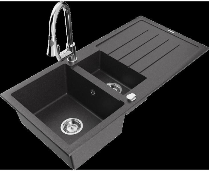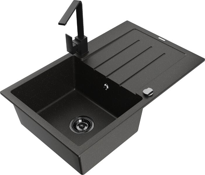 Mexen Kevin, gránit mosogató 586x458x190 mm, 1 kamrás és Carla mosogató csaptelep, fekete-ezüst metál, 6517-73-670700-70-B Gyártó: Mexen Sorozat: Kevin Szín: fekete/ezüst metál Modell: 1 kamrás, rövid leeresztővel Felszerelés: munkalapra Hossza 586 mm Szélesség 458 mm Magasság: 190 mm Kamra mérete: 378x374 mm Kamra mélysége: 175 mm A lefolyó átmérője: Ø 90 mm Szifon + au