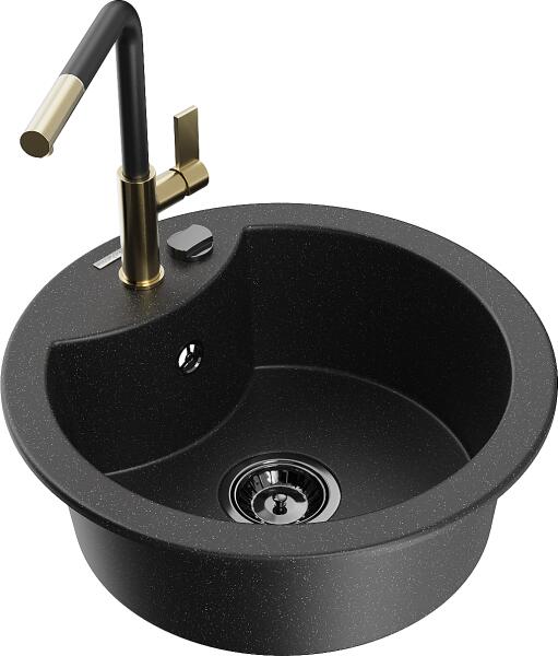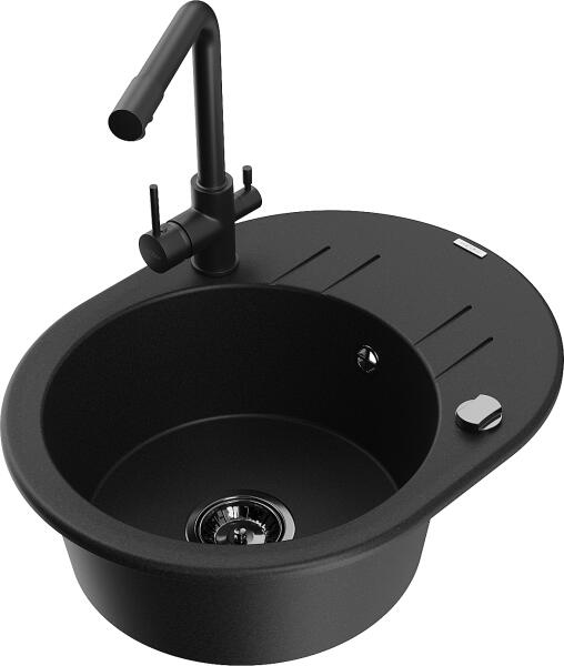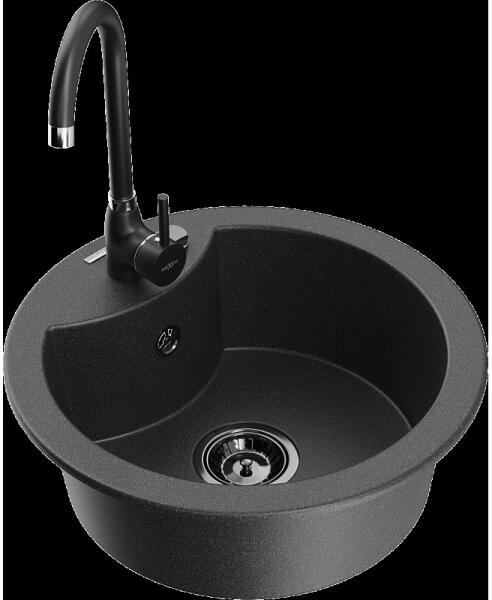 NERO Compact sarok gránit mosogató, ami egyben praktikus és impozáns látványelem is a konyhában. Tökéletes választás azokba a konyhákba, ahol a mosogató rész a sarokban lett kialakítva. Íves, de modern formatervezése nagyszerűen illik bármilyen stílusú konyhába. A mosogatón 2 lyuk lett kialakítva, egy a csaptelepnek és egy a beépíthető mosogatószer adagolónak vagy aut