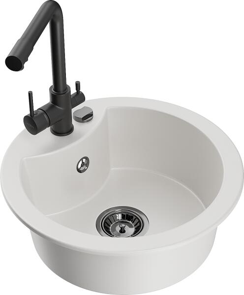 Mexen Diego, 1 kamrás gránit mosogató 488x488x167 mm, fekete Duero csaptelep, fehér, 6512-20-671600-70 Gyártó: Mexen Sorozat: Diego Modell: 1 kamrás Felszerelés: munkalapra Fehér szín Felület típusa : sima Hossza 488 mm Szélesség 488 mm Magasság: 167 mm Kamra mélysége: 157 mm Kamra mérete: 406 mm Lefolyó átmérője: 90 mm Szifon + automatikus leeresztő Anyaga: gránit (80% gr