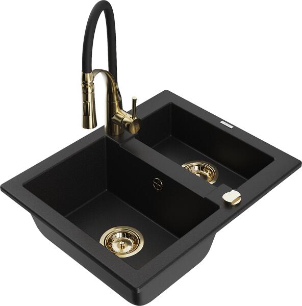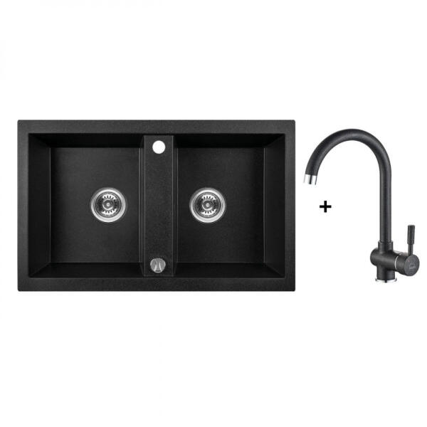 Laveo BARBADOS kétmedencés szett álló csappal, fekete