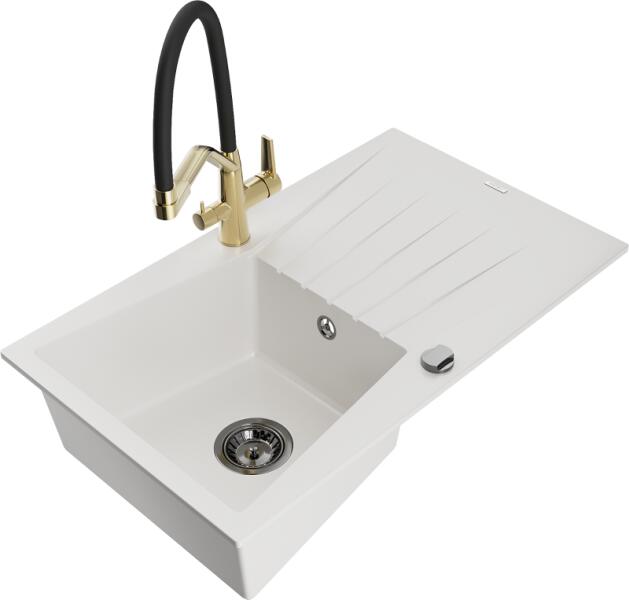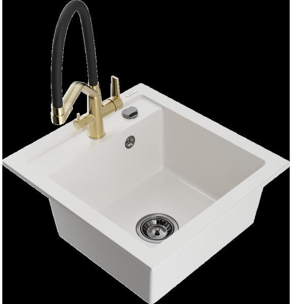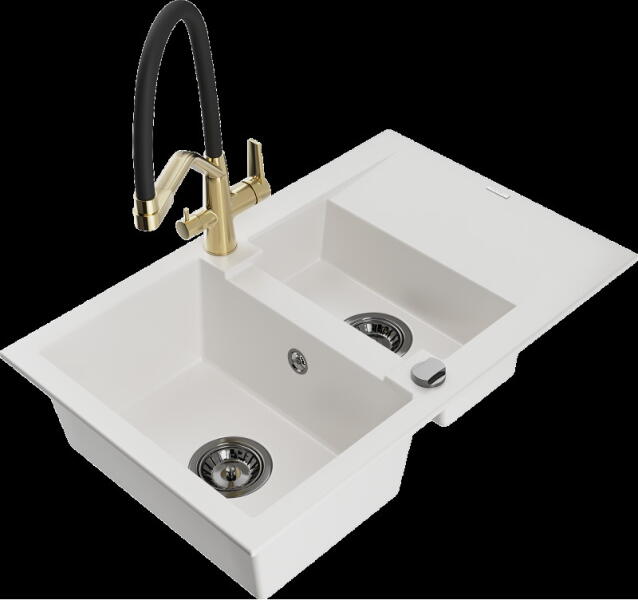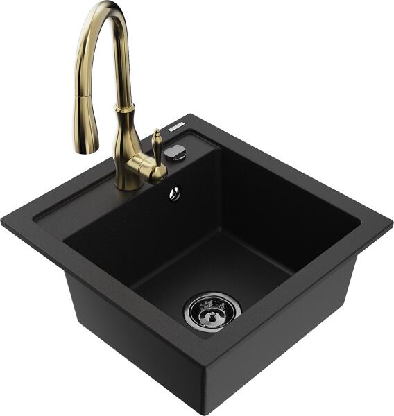 Mexen Elias konyhai mosogató: Gyártó: Mexen Sorozat: Elias Modell: 1 kamrás Beépítés: felülről a munkalapba süllyesztve Méretek: 795x480x200 mm Kamra mélysége: 190 mm Kamra mérete: 465x420 mm Lefolyó átmérője: 90 mm Szifon + automatikus leeresztő csavar Anyaga: gránit (80% gránit - kő, 20% gyanta) Sima felület a könnyű tisztítás érdekében: igen Megnövelt ellenállás