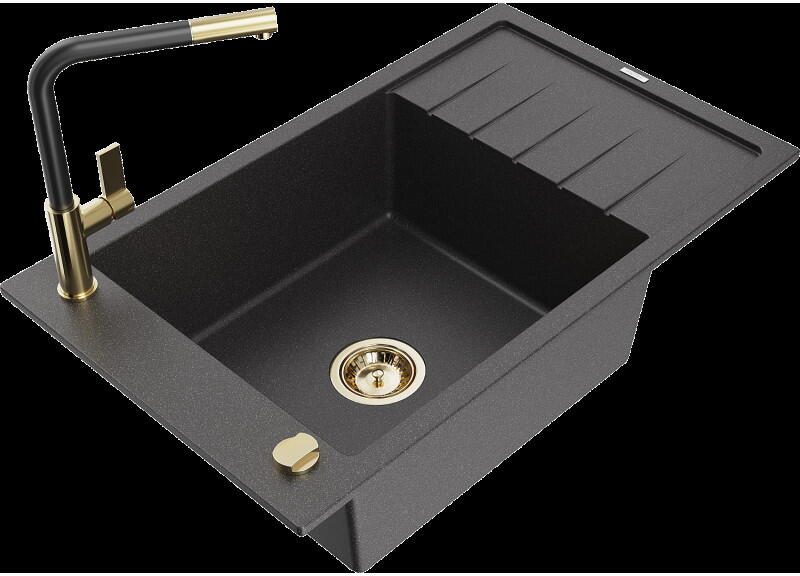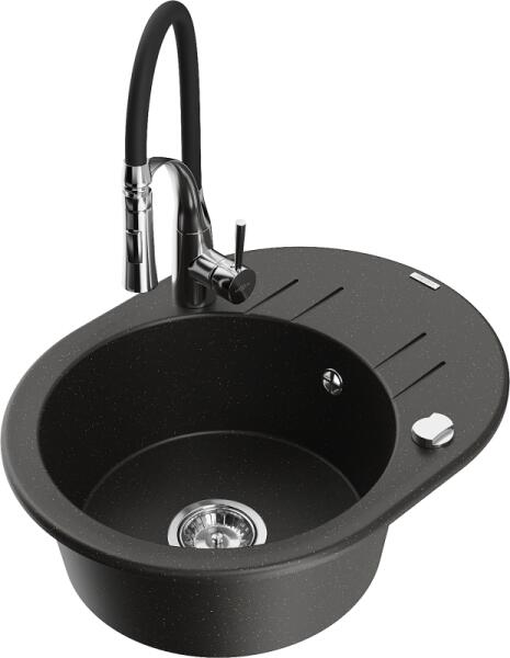 Mexen Cesar, gránit mosogató 775x470x190 mm, 1 kamrás, fekete foltos króm szifonnal és fekete Rita mosogató csaptelep, 6514-76-670300-70 A konyhai mosogató műszaki adatai: Gyártó: Mexen Sorozat: Cesar Modell: 1 kamrás Felszerelés: munkalapra Szín: fekete foltos Felületkezelés: sima Hossza 775 mm Szélesség 470 mm Magasság: 190 mm Kamra mélysége: 180 mm Kamra mérete: 410x355 mm