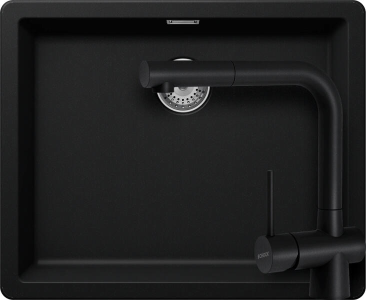 Schock Greenwich N-100L konyhai mosogatótálca Cristadur Puro 556 x 456 mm, gránit, hagyományos beépítés/munkalap alá építés, intenzív fekete munkalap alá építhető, egymedencés, csepegtető nélküli, ideálisan illeszkedik a minimum 60 cm-es alsószekrényhez. Ezt a modellt az egyedülálló CRISTADUR® termékanyag teszi kimagaslóvá, amely kitűnik sűrű felülete által, rend