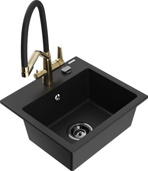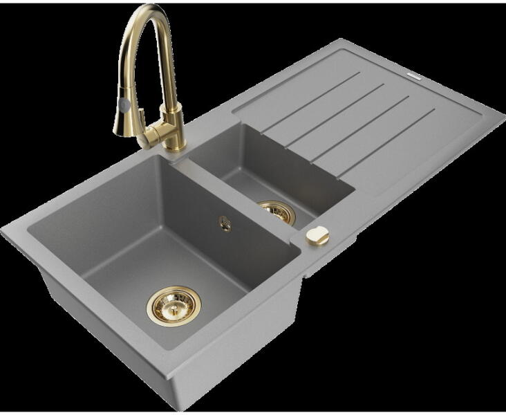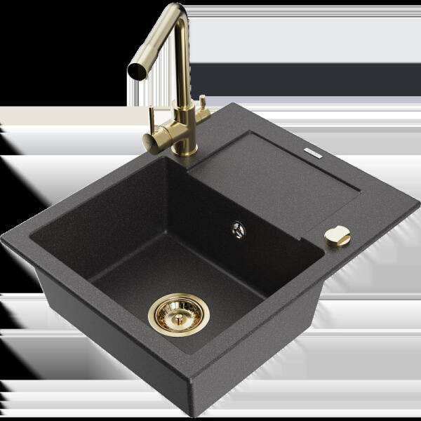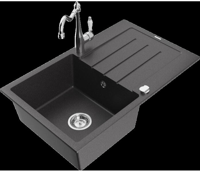 Leo konyhai mosogató: Gyártó: Mexen Sorozat: Leo Modell: 1-kamrás s csepegtetővel Hossza 900 mm Szélesség 500 mm Magasság: 190 mm Kamra mélysége: 180 mm Kamra mérete: 430x415 mm Alkalmas 500 mm-es szekrényekhez Szifon + automatikus leeresztő csavar Anyaga: gránit (80% gránit - kő, 20% gyanta) Sima felület a könnyű karbantartás érdekében: igen Megnövelt ellenállás az ütés