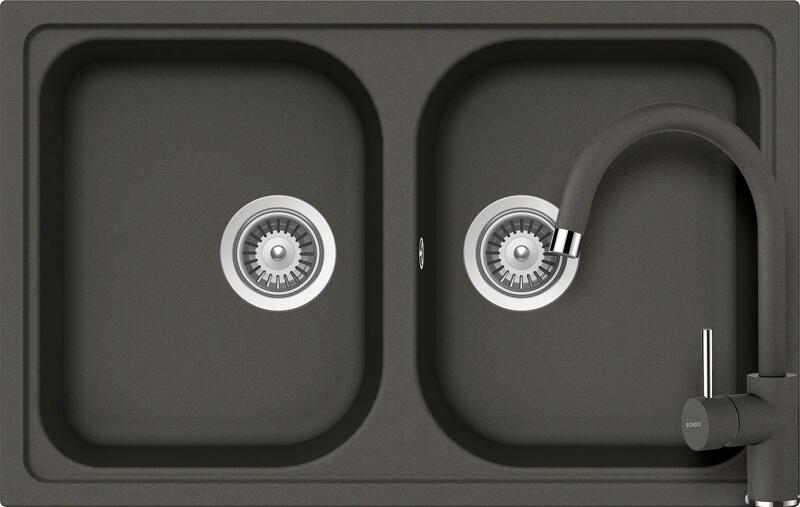 Schock Viola N-200S konyhai mosogatótálca Cristalite Asphalt 790 x 500 mm, gránit, megfordítható, hagyományos beépítés, aszfaltszürke munkalapba beépíthető, kétmedencés, csepegtető nélküli, ideálisan illeszkedik a minimum 80 cm-es alsószekrényhez. A csaptelep helye előre elkészített, könnyedén áttörhető. A csomagban találja a használati útmutatót, amely részletes