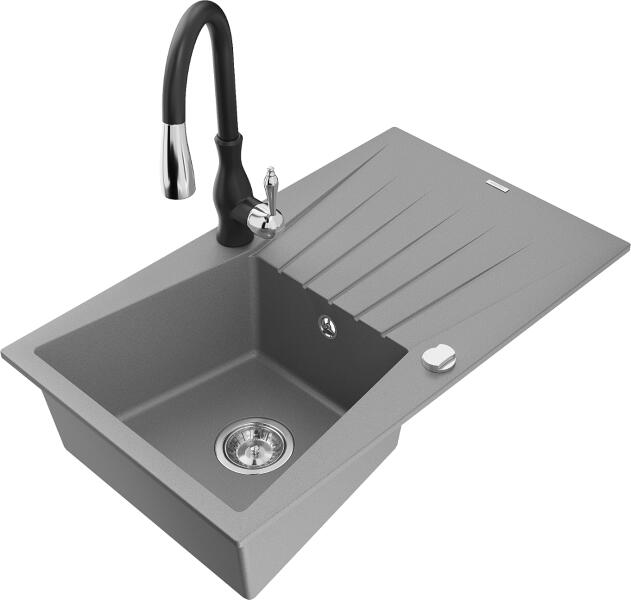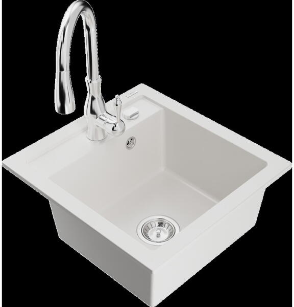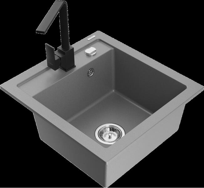 Mexen Milo konyhai mosogató: Gyártó: Mexen Sorozat: Milo Modell: 1 kamrás Beépítés: felülről a munkalapba süllyesztve Hossza 435 mm Szélesség 410 mm Magasság: 171 mm Kamra mélysége: 161 mm Kamra mérete: 375x280 mm Lefolyó átmérője: 90 mm Szifon + automatikus leeresztő csavar Anyaga: gránit (80% gránit - kő, 20% gyanta) Sima felület a könnyű tisztítás érdekében: igen