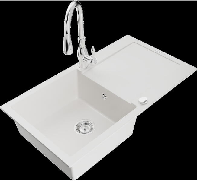 Leo konyhai mosogató: Gyártó: Mexen Sorozat: Leo Modell: 1-kamrás s csepegtetővel Hossza 900 mm Szélesség 500 mm Magasság: 190 mm Kamra mélysége: 180 mm Kamra mérete: 430x415 mm Alkalmas 500 mm-es szekrényekhez Szifon + automatikus leeresztő csavar Anyaga: gránit (80% gránit - kő, 20% gyanta) Sima felület a könnyű karbantartás érdekében: igen Megnövelt ellenállás az ütés