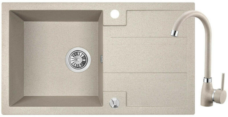 Laveo BARBADOS Egymedencés csepptálcás gránit mosogatótál + ÍVES ÁLLÓ CSAPTELEP szett Tiszta vonalvezetésű korszerű design, célszerű és kényelmes munkavégzés Laveo BARBADOS gránit mosogatótál Ajándék: 3,5"-os exkluzív rozsdamentes szűrőkosár Ajándék: helytakarékos szifon szett. Antibakteriális technológia. Méretek: 760x44 0 mm Minimális szekrény belső méret : 5