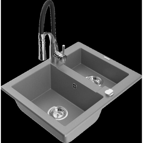Mosogató Sorozat: Enzo Modell: 1 kamrás Beépítés: a munkalapba való beágyazáshoz Mosogató méretei: 576 x 465 x 174 mm Kamra mérete: 395 x 320 mm Kamra mélysége: 164 mm Lefolyó átmérője: 90 mm Szifon + automatikus leeresztő csavar Anyaga: gránit (80% gránit - kő, 20% gyanta) A sima felület könnyen tisztítható: igen Megnövelt ellenállás az ütésekkel, karcolásokkal, els