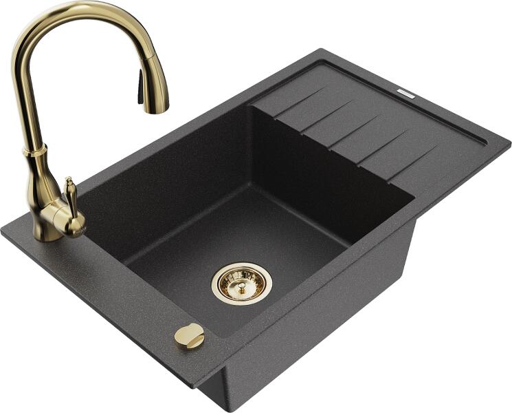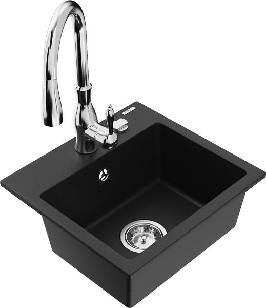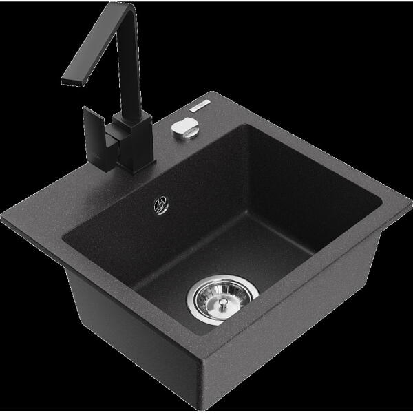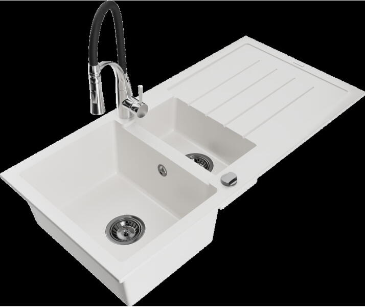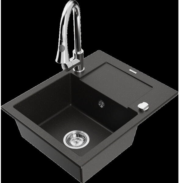Gyártó: Mexen Sorozat: Elias + Savita Mosogató: Mérete: 795x480x200 mm Kamra - mélység: 190 mm Kamra méretei: 465x420 mm Kimeneti átmérő: ø90 mm Típus: 1 kamrás, rövid csepegtetővel Mosogató típusa: a munkalapba való beágyazáshoz Anyaga: gránit (80% gránit adalékanyag 20% gyanta) Túlfolyó nyílás: Igen Lyukak: 2 (1 lyuk a mosogató csaptelepéhez, 1 lyuk az automatikus le