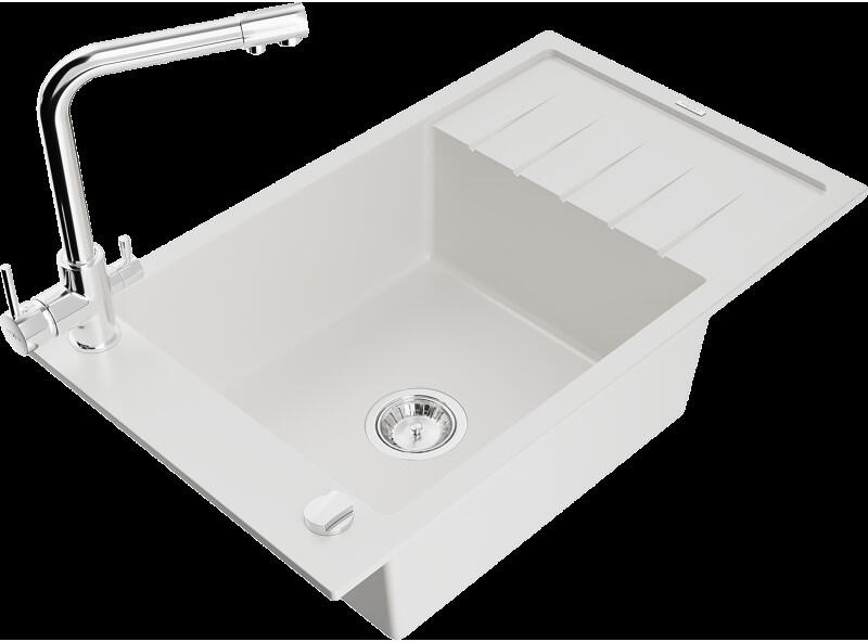 A mosogató matt kivitelben készülMosogatók Compact 760 mosogató Olyan tartós mosogatót keres, amely praktikus és egyben dizájn kiegészítője lesz konyhájának? Megvan a megfelelő megoldás az Ön számára. A Sinks Compact 760 mosogató matt felületű, első osztályú rozsdamentes acélból készült, amely fokozottan ellenáll a korróziónak, és megfelel a legmagasabb higiéniai